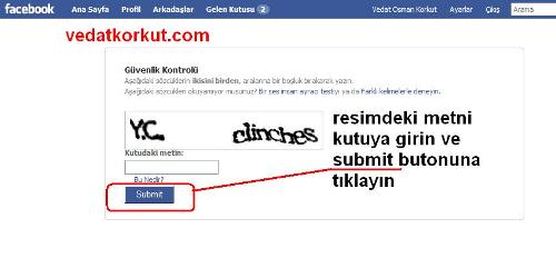 Az kaldı az… Şimdi çıkan sayfada kutudaki yazıyı hemen altındaki boş kutuya yazıp submit butonuna tıklayın